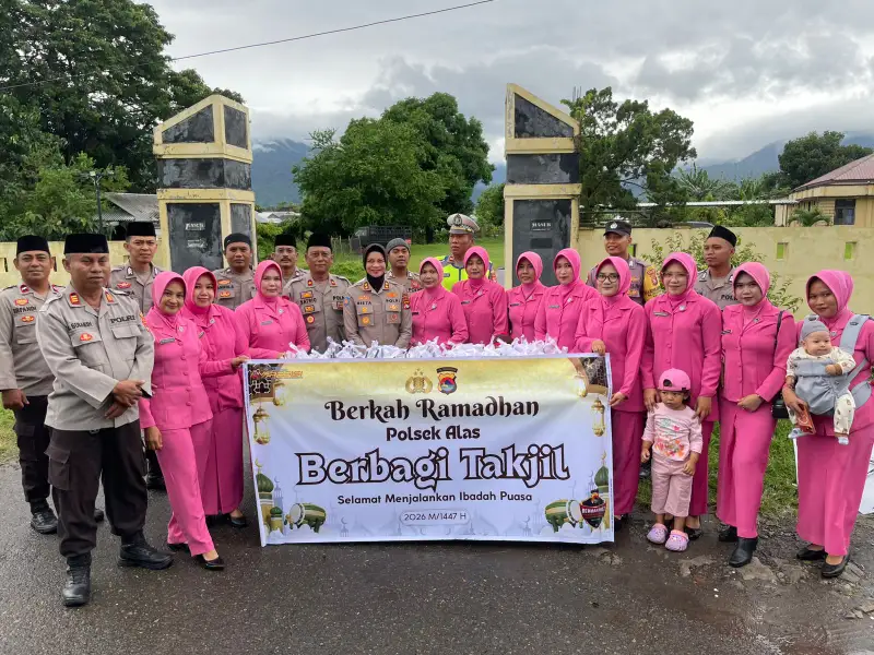 Wujud Kepedulian di Bulan Suci, Polsek Alas dan Bhayangkari Bagikan Takjil kepada Masyarakat
