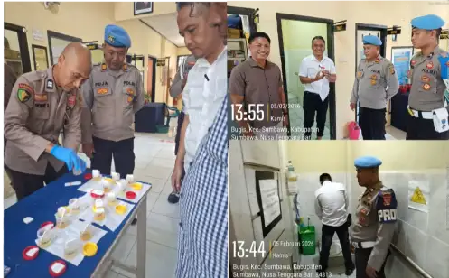 Dipimpin Kasat Harirustaman dan Diawasi Propam, Personel Satresnarkoba Sumbawa Lakukan Tes Urin Rutin