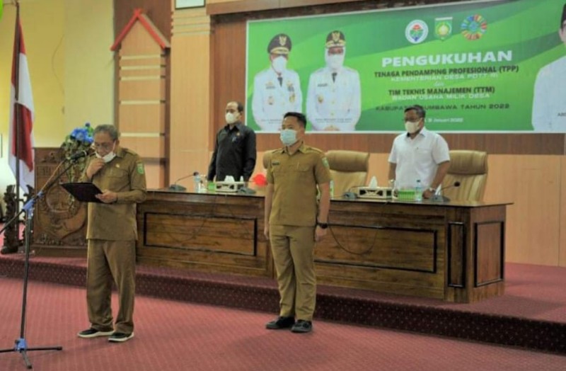 Bupati Sumbawa, Drs. H. Mahmud Abdullah resmi mengukuhkan sebanyak 97 Tenaga Pendamping Profesional (TPP) Desa dan Tim Teknis Manajemen (TTM) Bumdes di Kabupaten Sumbawa. Pengukuhan digelar di Aula H. Madilaoe ADT Lantai III Kantor Bupati Sumbawa, Senin (31/01/2022).