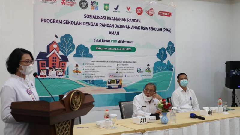 Sementara itu, Kepala Balai Besar POM Mataram Ibu Dra. I Gusti Ayu Adhi Aryapatni, Apt,. mengatakan, Pangan Makanan Anak usia Sekolah (PJAS) Aman adalah program Nasional Pemerintah yang bertujuan untuk mensosialisasikan bahaya penggunaan bahan perwarna pada makanan yang mengandung Boraks, rodamin B dan masih banyak lagi zat berbahaya lainnya.
