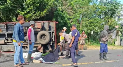 Kecelakaan Maut di Langam: Truk Engkel Terbalik, Penumpang Motor Remaja Tewas di Tempat
